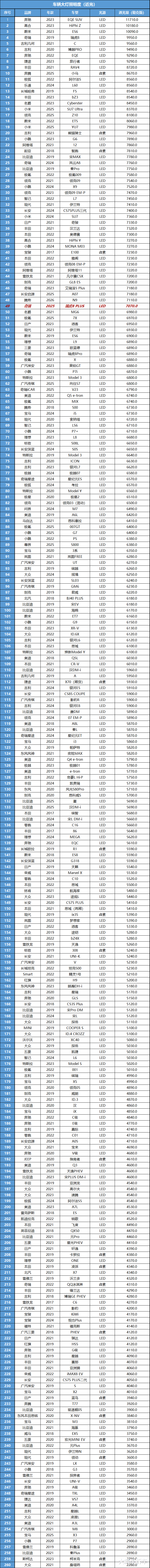 这辆车的大灯是LED光源,最大光照度为7070勒克斯,光照度确实不错!