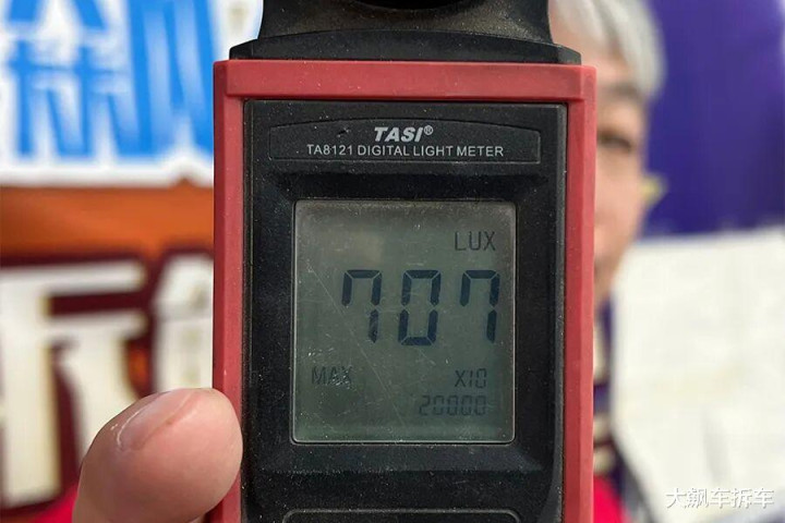 测试方法:以车灯最前端为基点,与垂直墙面相距2米距离,在发动机正常工作状态下进行测试,使用光线照度计取近光灯照明范围内的最大值。